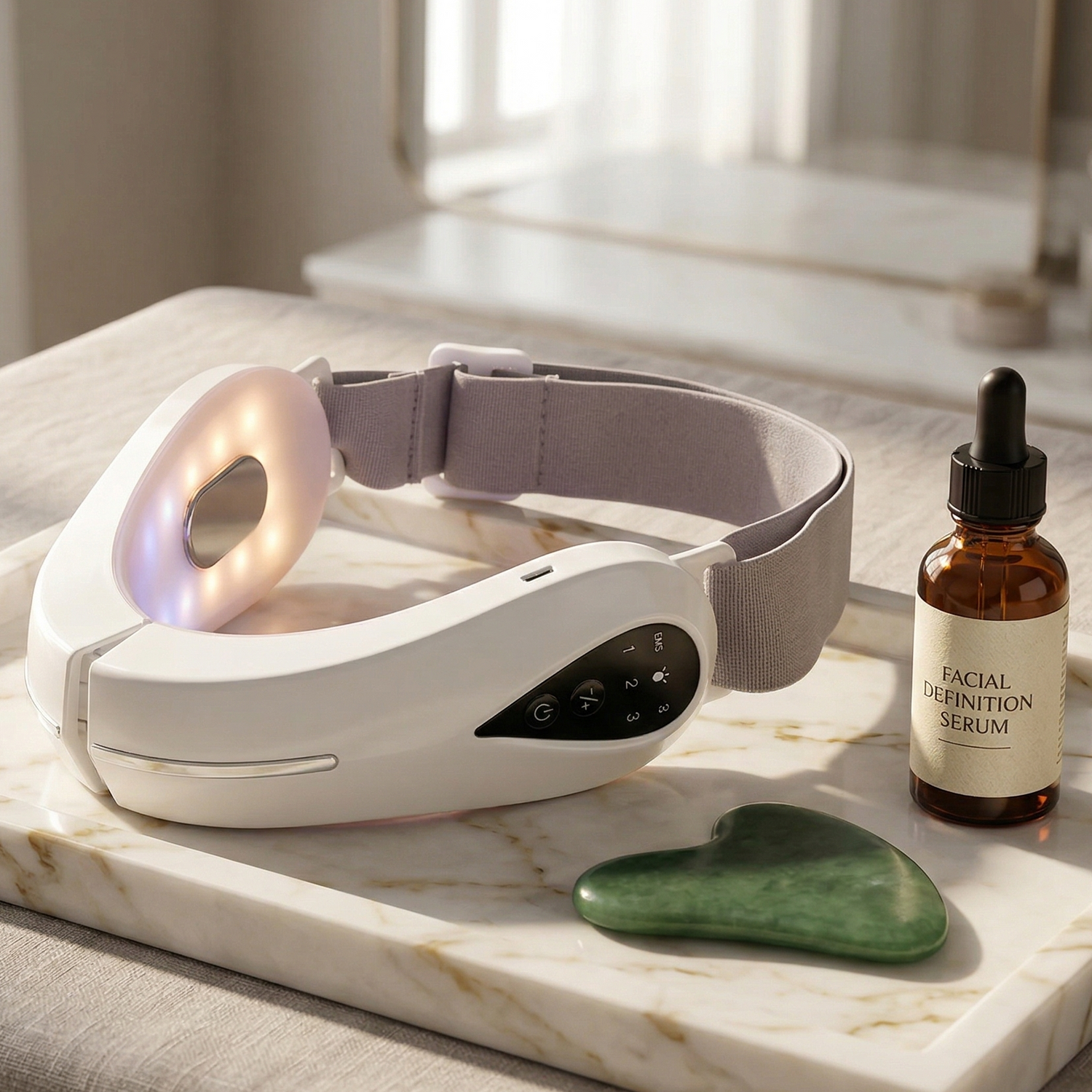 "I was initially very skeptical about this LED jawline contouring device, but I'm pleasantly surprised. The fit is surprisingly comfortable, and the light therapy feels soothing rather than harsh. I used it consistently for 15 minutes a day, and it took about 4 weeks to notice a visible tightening around my jaw and a slight reduction in my double chin.."